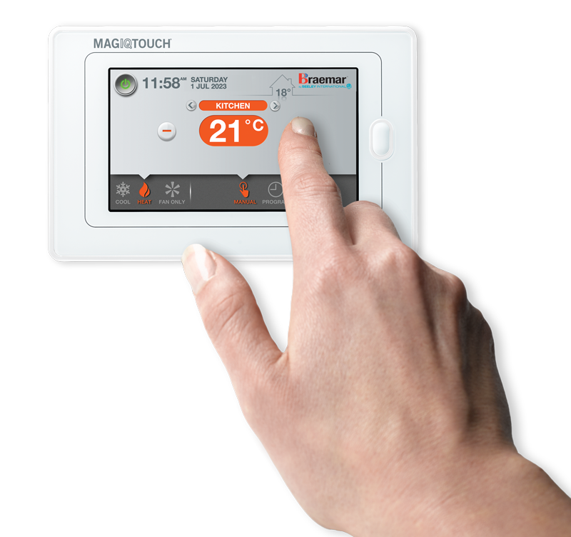 MagIQtouch controllers can have the optional upgrade Wi-Fi feature, requiring a separate Wi-Fi module, if ordered at the time of purchase. The Wi-Fi feature will enable you to control your Braemar or Breezair cooler or Braemar ducted gas heater from your personal device using the MagIQtouch Smart App. To check if your MagIQtouch controller is Wi-Fi enabled, you can watch our instructional video click here. Talk to your dealer if you would like to upgrade your controller. Find a dealer near you click here.